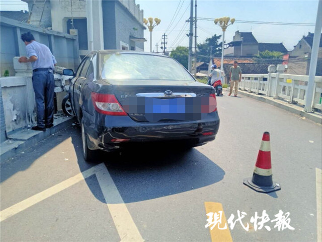 接警后,值班民警朱泉帶輔警迅速趕到現(xiàn)場,發(fā)現(xiàn)一輛蘇MUK1XX的轎車撞撞擊護(hù)欄后氣囊被彈出,車輛損失較大,駕駛員受了輕傷,從駕駛室爬出,癱坐在橋邊。