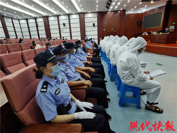 據(jù)了解,丁某、王某并案審理后共有22名被告人,有4人被羈押于淮安市看守所、6人被羈押于漣水看守所,另有12人被取保候?qū)?。為確保庭審順利安全進(jìn)行,該院提前研究制定疫情防控、被告人提押、庭審方式和警務(wù)保障等多項(xiàng)預(yù)案。同時(shí)經(jīng)多方協(xié)調(diào),解決了提押困難、警力保障不足等困難,共調(diào)警15名。醫(yī)院提前一天派醫(yī)生前來(lái)替所有參與押解和值庭的法警進(jìn)行核酸檢測(cè)確保安全,開(kāi)庭當(dāng)日所有法警均穿戴醫(yī)用防護(hù)裝備。