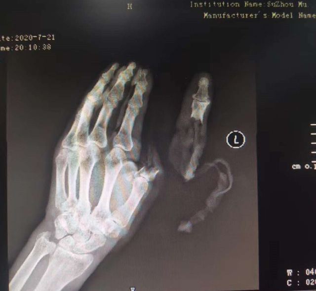 事故發(fā)生后,老人立即被家人送往當?shù)蒯t(yī)院,但是醫(yī)生表示老人傷情過重,手指可能保不住了。抱著試一試的心態(tài),當晚7時許,老人來到蘇州市立醫(yī)院本部骨科求助。