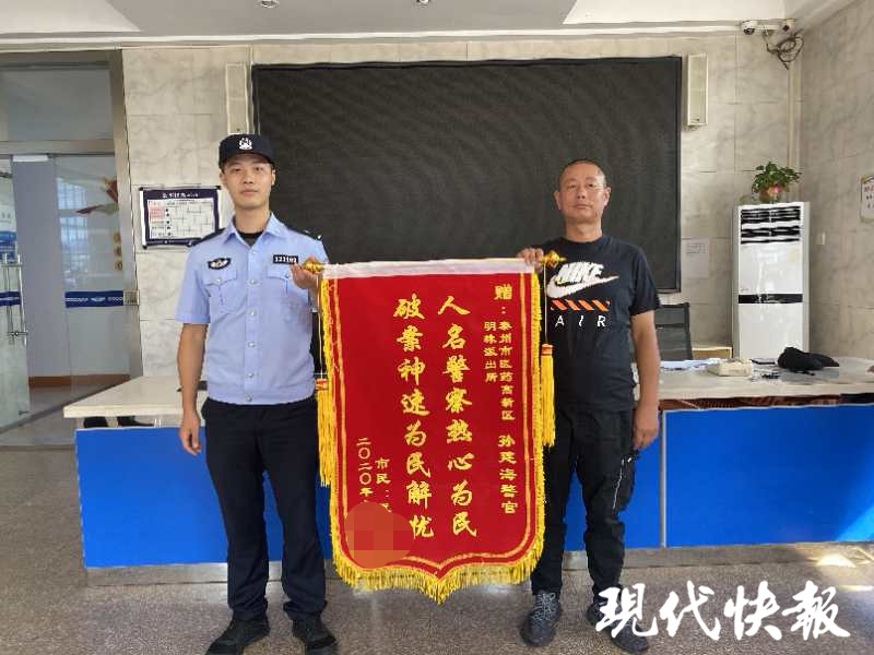 9月26日,失主戴先生將一面寫(xiě)有“人民警察熱心為民,破案神速為民解憂”的錦旗送到了泰州醫(yī)藥高新區(qū)明珠派出所,感謝民警幫其找回被盜的現(xiàn)金。