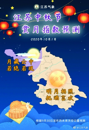 △江蘇氣象發(fā)布的中秋賞月地圖