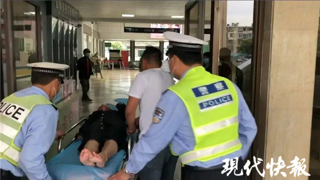 執(zhí)勤民警接報(bào)后,立即與護(hù)送的安徽碭山警方取得聯(lián)系,發(fā)動(dòng)警車在門口等候。很快,雙方碰面,與求助車輛駕駛?cè)私淮?,立即駕車?guó)Q笛開道送醫(yī)。由于節(jié)假日期間路面車輛較多,車上民警不斷使用喊話器通知路面車輛避讓,50多分鐘路程用了20分鐘左右就趕到徐州九七醫(yī)院,為及時(shí)治療爭(zhēng)取了寶貴的時(shí)間。