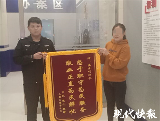 10月13日,民警收到水晶戒指后第一時(shí)間歸還給了張女士,拿到寄錯(cuò)的戒指,張女士十分驚喜,對民警連連表示感謝,并特地制作了一面錦旗送到了派出所。