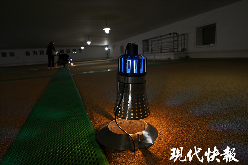 在害蟲繁殖季節(jié),糧倉內(nèi)如果發(fā)現(xiàn)害蟲達到一定密度,就會進行熏蒸殺蟲。還有些倉內(nèi)殺蟲免熏蒸,專門安放了蟲籠誘捕器,利用害蟲趨高趨光趨味等特性進行誘殺。