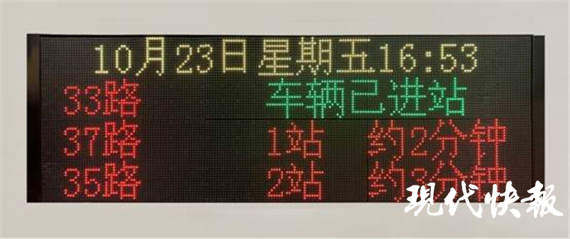 據(jù)悉,現(xiàn)在南京很多電子公交站牌上,顯示了日期時間、線路、車輛到站數(shù)等信息,乘客需根據(jù)線路車輛即將到站數(shù)來決定乘坐哪一路車輛。在升級后,頁面更加精簡,直接用數(shù)字來表示車輛還有幾站進站。尤其貼心的是,依托大數(shù)據(jù)測算,在顯示屏上增加車輛到站預(yù)計時間,讓乘客不再“盲等”。另外,增加車輛已進站用醒目的綠色字體來顯示“車輛已進站”,增加線路末班車標記,以及末班車已過提醒,更直觀地提醒乘客。
