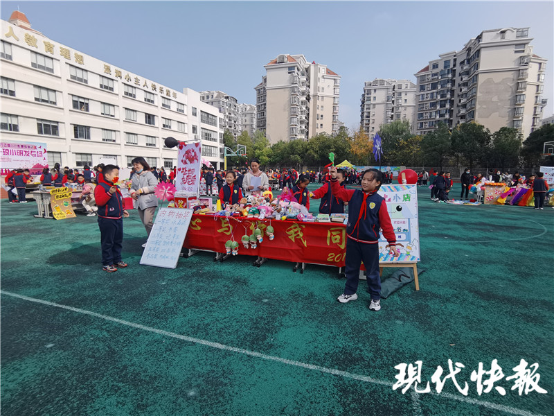 今年10歲的陳芷涵,是四年級10班的一名學(xué)生,可謂是攤位上的“銷售精英”。她告訴記者,為了順利賣貨,前一天晚上準(zhǔn)備了很久。“我就在網(wǎng)上看了很多順口溜,都用在了現(xiàn)場。”在接受采訪時,陳芷涵還現(xiàn)場展示一段:“幾塊錢毛毛雨,買不了冰箱,買不了冰柜;幾塊錢毛毛雨,買不了房子,買不了車。鄰家的少女鄰家的哥,快來看看喲。”在她的攤位,準(zhǔn)備的東西已經(jīng)快被賣光了。