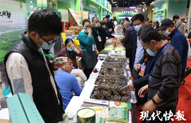 在上海國際農展中心鹽城展區(qū)內,現(xiàn)代快報記者看到,現(xiàn)場有糧油、果蔬、畜禽、水產等多個品類,布展面積超450平方米,優(yōu)質農產品精品薈萃,射陽大米、大豐海苔、濱海何首烏、鹽都水牛肉、響水西蘭花等集中亮相,前來品嘗、購買的市民絡繹不絕,上海百姓對“鹽城味道”贊不絕口。