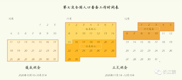 ▲第七次全國人口普查時(shí)間表,短表登記覆蓋全體居民,長表登記只抽取10%的住戶填報(bào) 長江策制圖