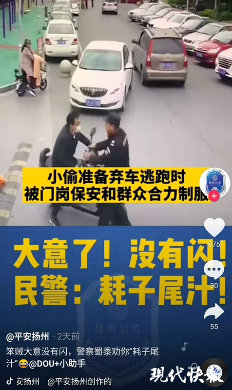 偷電瓶“跑路”撞護(hù)欄 警方抖音配字幕:大意了 沒有閃