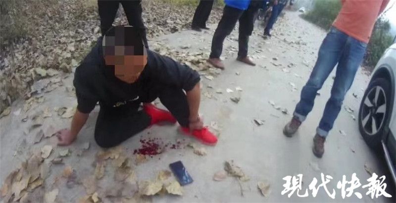 △小王被打倒在地上。警方供圖
