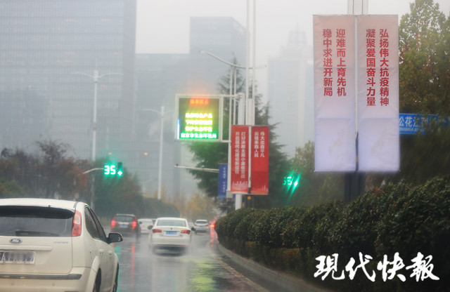11月25日,現(xiàn)代快報(bào)記者從鐘山賓館經(jīng)中山東路、龍?bào)粗新?、?yīng)天大街高架、江東中路、夢(mèng)都大街,一路都可以看到紅色或是白色的道旗,格外醒目。道旗上的宣傳標(biāo)語(yǔ)令人振奮、超級(jí)暖心。26日,這些道旗將一路指引和歡迎抗疫英雄,到達(dá)江蘇大劇院參加表彰大會(huì)。