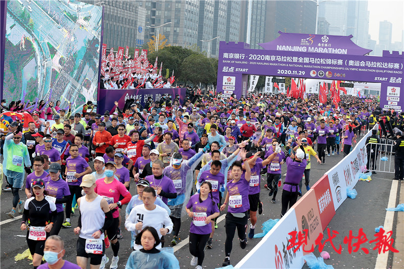 (記者 李楠 盧河燕/文 顧煒/攝)11月29日7點30分,2020南京馬拉松暨全國馬拉松錦標賽(奧運會馬拉松達標賽)鳴槍開跑。據(jù)悉,這是本年度國內(nèi)唯一舉辦的全國馬拉松錦標賽和東京奧運會達標賽。在終點線前,現(xiàn)代快報記者注意到多幅畫面,既有倒地后憑著頑強意志完成比賽的95后選手楊樂,也有跑馬4年的60后“輪椅跑者”。在南馬賽道,他們奮力拼搏,展現(xiàn)中國體育精神,令全場觀眾動容。