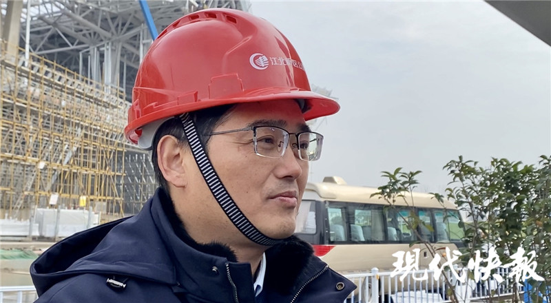△江北新區(qū)公建中心建筑工程處處長杜立春介紹楊子江會議中心施工建設情況