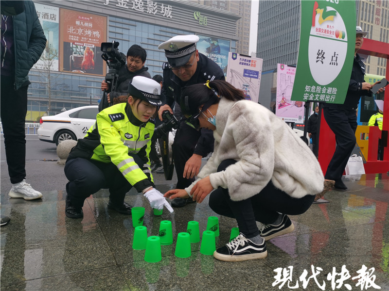 “千萬(wàn)不要酒駕,剛剛的體驗(yàn)讓我暈頭轉(zhuǎn)向,隨時(shí)要跌倒。”12月2日,淮安舉行全國(guó)交通安全日啟動(dòng)儀式宣傳活動(dòng),淮陰區(qū)某駕校學(xué)員徐女士戴起醉駕體驗(yàn)眼鏡,從起點(diǎn)出發(fā),沿著擺放好的錐桶前進(jìn),搖搖晃晃半天才走到終點(diǎn)。