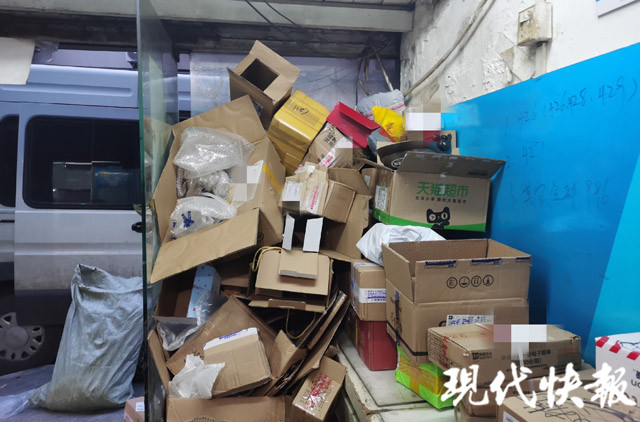 △南京一家快遞網(wǎng)點(diǎn)堆放的紙盒