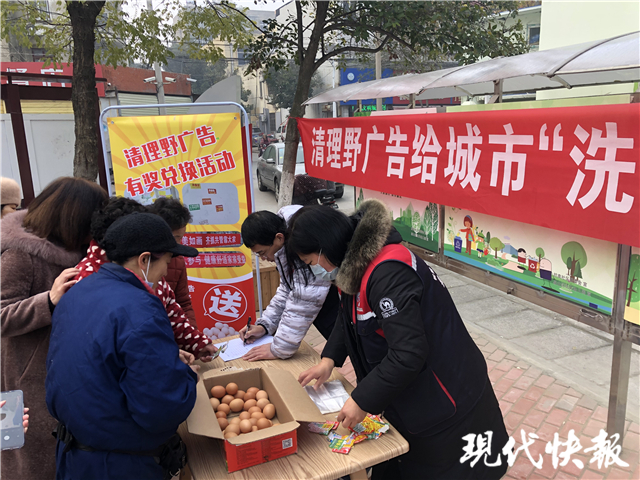 (通訊員 羅津菁 記者 張曉培)“每10張野廣告可兌換1個雞蛋。”近日,在徐州市泉山區(qū)永安街道紡南社區(qū)黨群服務(wù)中心門口,居民孫阿姨剛剛完成了一筆“交易”,她將從自家樓棟里清理下來的野廣告交給社區(qū)工作人員清點,“清理了30多張小廣告,換了3個雞蛋,這買賣值。”孫阿姨拿著雞蛋高興地說。
