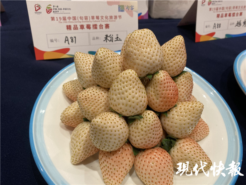 紅的、白的、粉的;扇形、橢圓形、細(xì)長形……擂臺賽現(xiàn)場,滿眼望去各式各樣的草莓甜香四溢。鎮(zhèn)江市草莓協(xié)會會長唐山遠介紹,參賽的草莓種植戶、農(nóng)企,最遠來自新疆、遼寧,涵蓋了全國主要草莓產(chǎn)區(qū)。