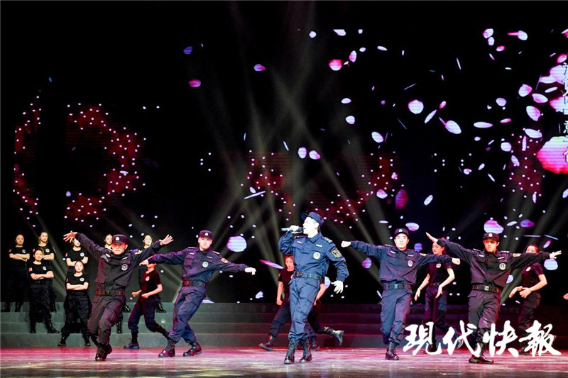 “警旗召喚,指引方向,我們昂首向前沖。”當(dāng)晚,一首亭湖公安的原創(chuàng)歌曲《警旗召喚》拉開活動(dòng)的序幕,繼而民警們相繼奉上《天下無詐》《反詐DISCO》等歌曲串燒,精煉的歌詞、動(dòng)感的旋律展現(xiàn)了亭湖公安昂揚(yáng)向上的面貌,收獲了全場觀眾熱烈的掌聲與歡呼聲。