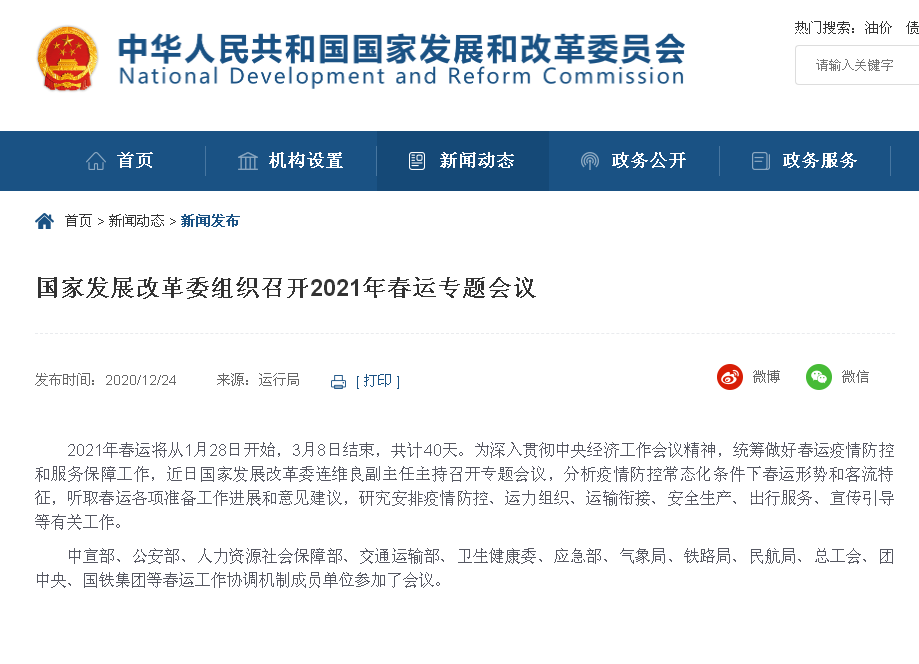 (記者 劉偉娟)12月24日,現(xiàn)代快報(bào)記者獲悉,國家發(fā)展改革委近日組織召開2021年春運(yùn)專題會議。2021年春運(yùn)將從1月28日開始,3月8日結(jié)束,共計(jì)40天。根據(jù)目前火車票預(yù)售期來算,12月30日,2021年春運(yùn)火車票開售。