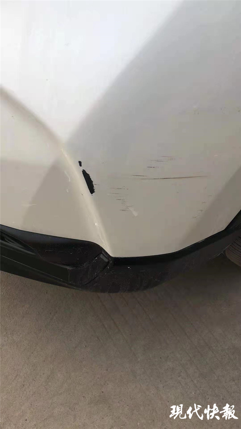 高某原本以為,顏色相近的牙膏和車漆可以“魚目混珠”,第二天便開車載著老板去張家港談生意了。沒想到他的這個“伎倆”,很快就被對方車主識破。12月21日下午1時許,白車車主,34歲的郭先生想開車離開酒店。啟動車子之前,他習慣性地繞車走了一圈觀察情況,結(jié)果發(fā)現(xiàn)車頭左前方顏色不太對。
