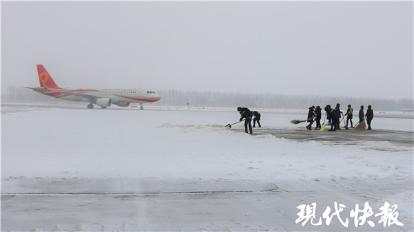 江蘇南京等多地機場除雪忙 旅客乘機要注意