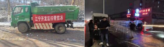寒冷的天氣抵擋不住協(xié)會(huì)各企業(yè)為民服務(wù)的熱情,從29日清晨到30日早上,他們不顧嚴(yán)寒,積極發(fā)揮行業(yè)優(yōu)勢(shì),如火如荼的在城市交通干道上忙碌著,清掃路面出現(xiàn)的“攔路虎”,全面保障好居民群眾正常交通出行。其中,南京全垚建筑裝飾有限公司出動(dòng)五小車5輛,裝載機(jī)一臺(tái),從29日早上8點(diǎn)半至30日早上7點(diǎn)半,日夜不歇的行駛在將軍大道和越秀路路段,將融雪劑拋灑至路面,最大限度降低路面出現(xiàn)結(jié)冰狀況;南京通源市政工程有限公司出動(dòng)3臺(tái)掃雪車,3名駕駛?cè)藛T,從29日深夜11點(diǎn)開(kāi)始清掃到凌晨3點(diǎn),路面逐漸出現(xiàn)車輛通行才將停止作業(yè);南京浦達(dá)建設(shè)工程有限公司更是出動(dòng)6輛車輛,??繓|山街道綜合行政執(zhí)法大隊(duì)隨時(shí)進(jìn)入“待命”狀態(tài)......