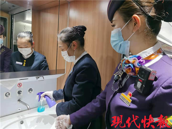 △合肥客運段對列車重點區(qū)域消毒。呂紅麗 攝影