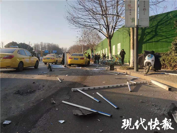 只因打了一個(gè)盹 這輛出租車連撞6節(jié)隔離護(hù)欄