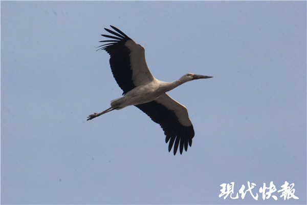 據(jù)南京野鳥保護(hù)協(xié)會護(hù)鳥志愿者武先生稱,當(dāng)時看到東方白鸛在空中盤旋時,他都驚呆了。“沒想到一次能見到40多只東方白鸛,它們有著長長的嘴巴,通體雪白,只有翅膀邊緣和下側(cè)是黑色,外形很像傳說中的仙鶴。”