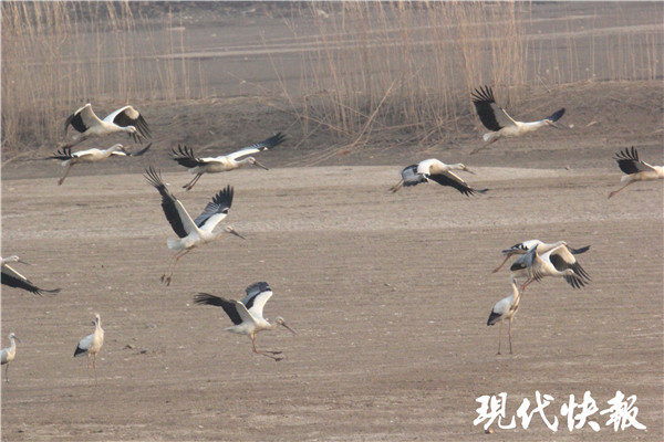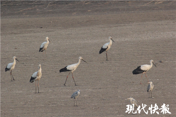罕見!南京六合驚現(xiàn)40余只東方白鸛