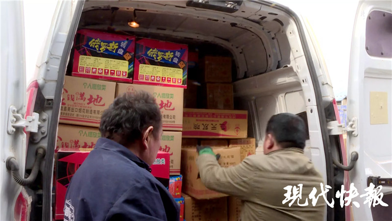 △面包車內(nèi)即將運(yùn)走的煙花