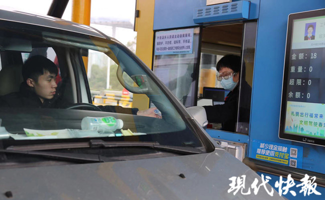 下午1點(diǎn)左右,蘇州多個(gè)高速路口出現(xiàn)車流量增多的情況。記者在蘇嘉杭高速城區(qū)出入口看到,有專門的工作人員佩戴口罩,對(duì)準(zhǔn)備進(jìn)出站的車輛逐個(gè)檢查,為車內(nèi)的每個(gè)人員測(cè)量體溫,體溫未發(fā)現(xiàn)異常才能放行車輛。
