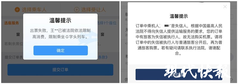 △記者確認(rèn) 該失信人員無法購買機(jī)票、高鐵票