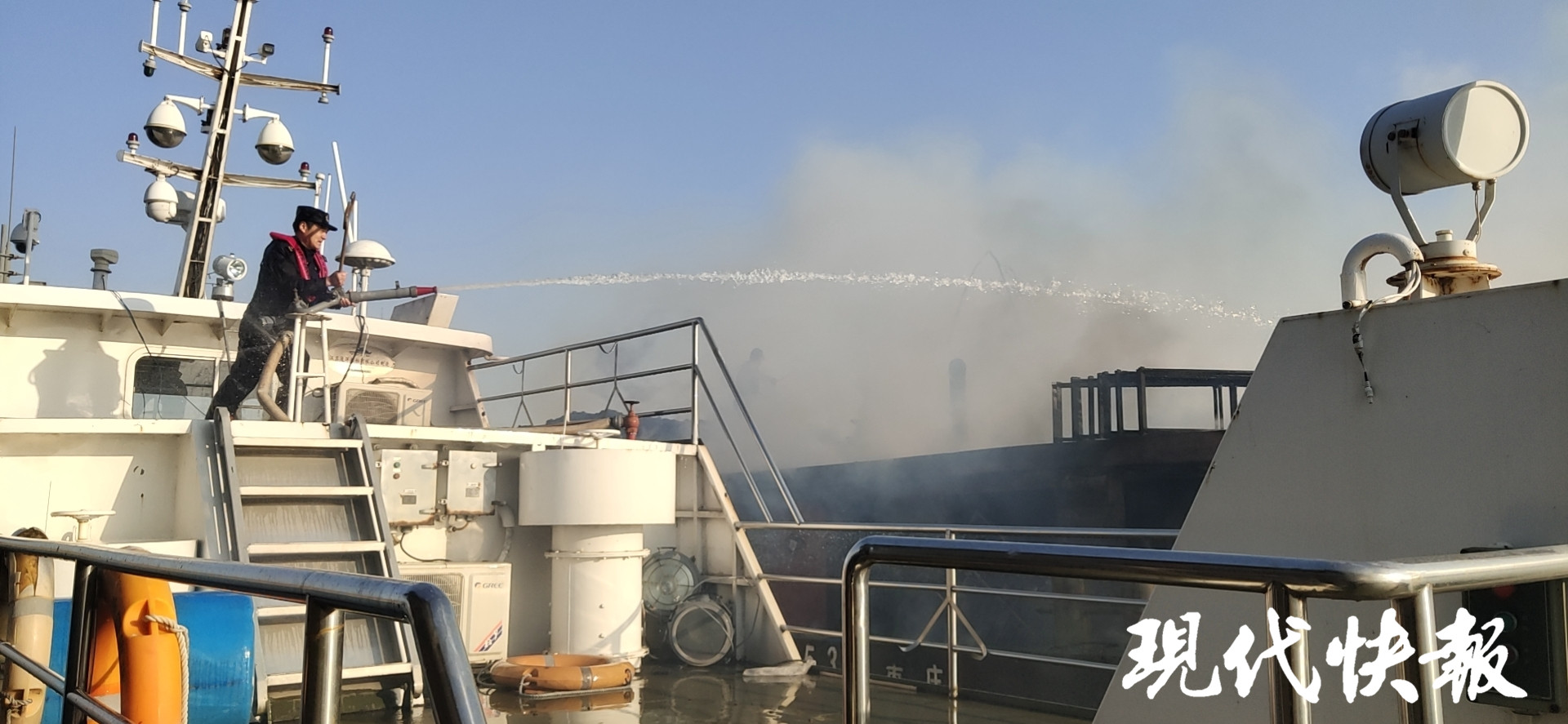 9點(diǎn)29分,航道恢復(fù)正常通航。經(jīng)過(guò)現(xiàn)場(chǎng)調(diào)查,事故原因?yàn)榇熬€路老化自燃引起的生活艙起火。