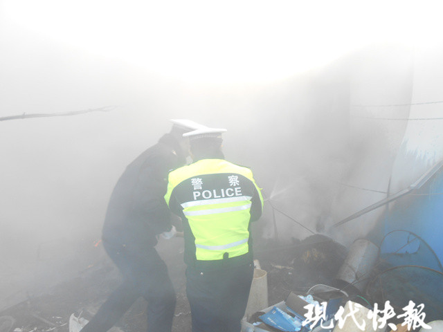 簡易房突然起火 巡邏交警沖入火場搶出兩只煤氣罐
