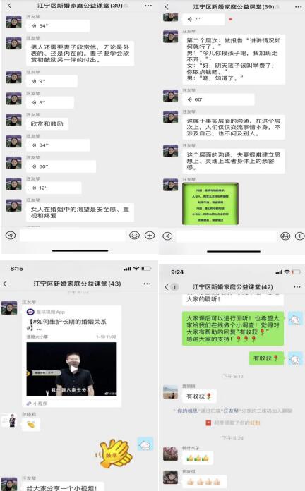 婚姻是家庭的紐帶,婚姻家庭和諧事關(guān)民生幸福和社會(huì)穩(wěn)定。微課堂伊始,婚姻輔導(dǎo)老師汪友琴針對(duì)新形勢(shì)下婚姻家庭出現(xiàn)的新問(wèn)題、新情況通過(guò)語(yǔ)音、圖片、視頻、題目互動(dòng)的形式展開(kāi)關(guān)于經(jīng)營(yíng)婚姻如何培養(yǎng)處理沖突的能力及新婚家庭如何做到有效溝通的分析講解,同時(shí),微課堂還設(shè)置了問(wèn)答互動(dòng)環(huán)節(jié),參與其中的新婚夫妻踴躍搶答相關(guān)問(wèn)題,有效幫助新婚夫婦做好進(jìn)入婚姻狀態(tài)的準(zhǔn)備,培養(yǎng)婚姻意識(shí),增強(qiáng)婚姻穩(wěn)定性,從起點(diǎn)上預(yù)防和減少離婚事件的發(fā)生。