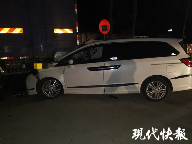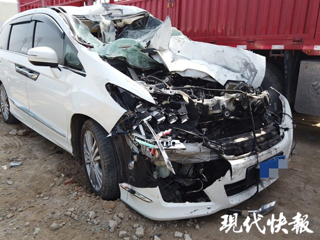 當(dāng)晚10點(diǎn)多鐘,徐州豐縣交警大隊(duì)城區(qū)中隊(duì)接到報(bào)警稱,一男子酒后駕駛一輛白色商務(wù)車撞上一輛??吭诼愤叺拇筘涇囄膊?。民警迅速趕到現(xiàn)場(chǎng),發(fā)現(xiàn)這輛商務(wù)車車頭已擠壓在大貨車尾部的車廂下,車內(nèi)氣囊已全部打開(kāi),車身外觀損毀嚴(yán)重,駕駛?cè)藦埬碀M身酒氣,正撫摸著受傷的脖子不知所措地坐在車旁草地上。