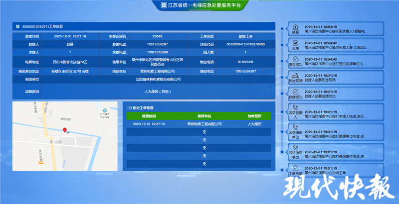 在江蘇,全省電梯應(yīng)急救援平均到場用時縮短到13.1分鐘,遠低于國家規(guī)定的30分鐘,現(xiàn)場救援平均耗時4.8分鐘,比上一年度下降4%。截至2020年底,江蘇電梯總量77萬余臺,總量居全國第二,全省電梯安全狀況穩(wěn)中向好,電梯應(yīng)急處置服務(wù)平臺運行平穩(wěn),及時高效處置了電梯困人事件。
