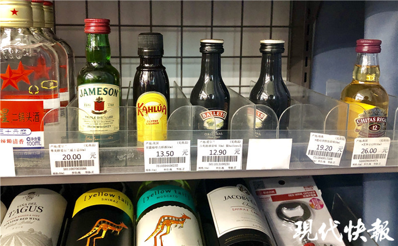 在南京新街口商圈的多家24小時便利店內(nèi),現(xiàn)代快報記者發(fā)現(xiàn),50毫升的迷你款基酒價格在13-26元不等,貨架上各種基酒幾乎都只剩一瓶,而搭配的軟飲庫存仍剩不少。羅森(長江路店)店員告訴記者,以前購買這種迷你款基酒的顧客并不多,最近社交平臺的網(wǎng)紅大V們讓這種便利店調(diào)酒火出了圈,前來選購的顧客基本都是成對成組地購買。