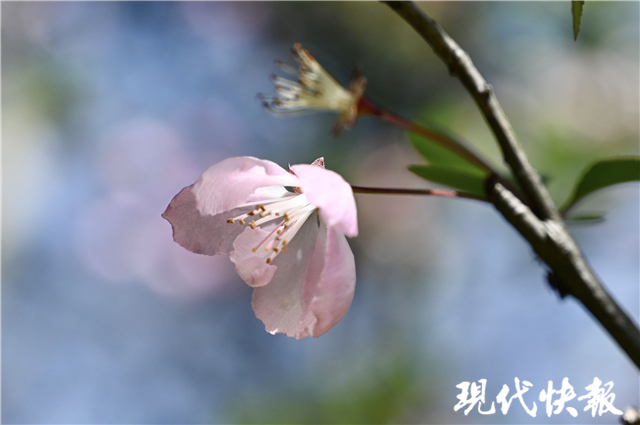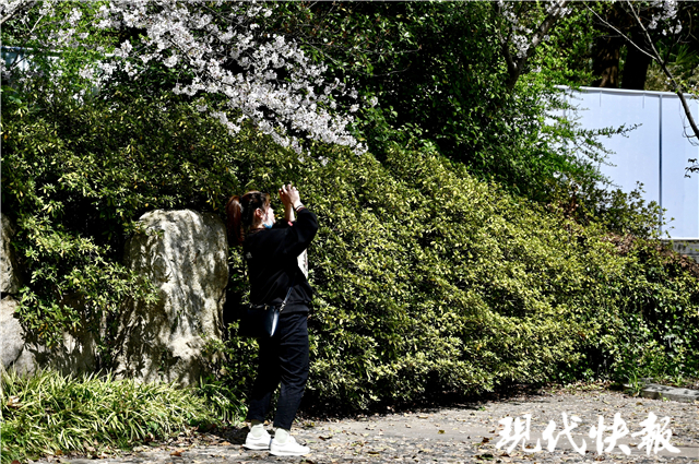 相較前幾日陰沉沉的天空,周一藍(lán)天也如約上線。在純凈的藍(lán)天映襯下,春日的綠意融融、百花爛漫,更多了幾分清新與詩意。雞鳴寺路看櫻花、莫愁湖看海棠、玄武湖看郁金香…… 雖然是工作日,這些景點(diǎn)的游客依舊不少。