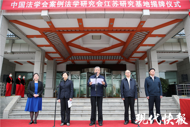 現(xiàn)代快報(bào)記者了解到,省法院黨組成員、副院長劉嬡珍主持揭牌儀式,中國法學(xué)會案例法學(xué)研究會秘書長梁欣,省法院黨組成員、政治部主任孫效增,以及基地成員單位代表出席揭牌儀式。