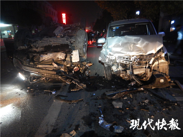 南通一男子醉駕不到500米連撞四車 翻了個(gè)底朝天