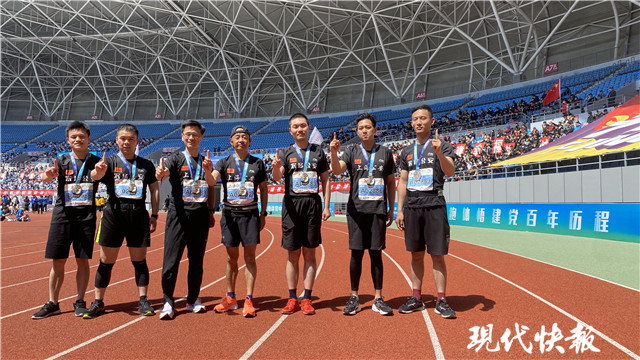 現(xiàn)代快報記者注意到,在半程馬拉松比賽的終點,7名剛剛完成比賽的外地跑友異常興奮。面對鏡頭,他們一起用山東話、云南話、安徽話、蘇北話等不同的口音,共同喊出一句:“鹽馬加油、上海公安加油、農(nóng)場公安加油!”