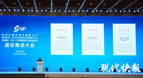現(xiàn)場(chǎng),宣讀了科技部批復(fù),支持江蘇省、蘇州市以及工業(yè)園區(qū)建設(shè)“一區(qū)兩中心”即國(guó)家生物藥技術(shù)創(chuàng)新中心、國(guó)家第三代半導(dǎo)體技術(shù)創(chuàng)新中心、蘇州國(guó)家新一代人工智能創(chuàng)新發(fā)展試驗(yàn)區(qū)。