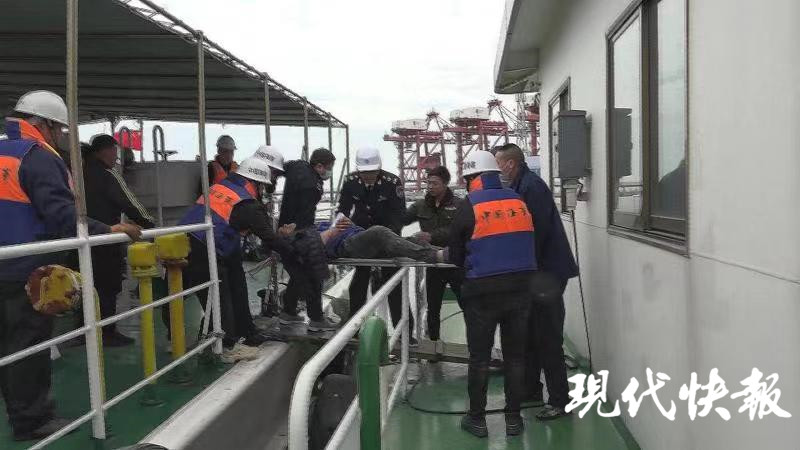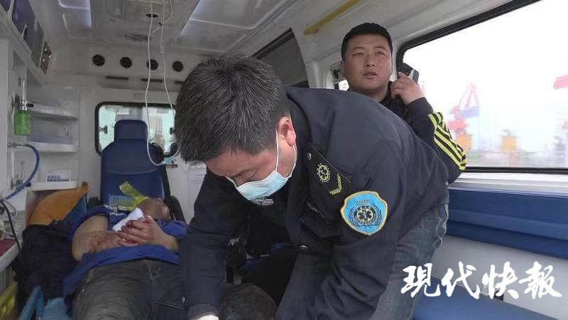 4月20日上午10點(diǎn)半左右,現(xiàn)代快報記者在濱海海事處躉船碼頭上看到,海事處工作人員和120急救醫(yī)生已經(jīng)準(zhǔn)備就緒,中國海事“0616海巡艇”一路響著警報靠近碼頭,應(yīng)急救援人員隨即登上海巡艇,將右手用毛巾包裹著的漁民轉(zhuǎn)運(yùn)到擔(dān)架上,并立即抬下海巡艇送上早已等候的救護(hù)車,而漁民被絞斷的右手則被放在一只用冷冰敷著的紙箱里。