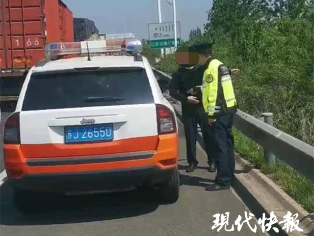 當(dāng)天上午10點(diǎn)左右,江蘇省高速公路交通運(yùn)輸執(zhí)法總隊(duì)沿海支隊(duì)第二大隊(duì)執(zhí)法人員巡查到沈海高速鹽城境內(nèi)時(shí),發(fā)現(xiàn)一名男子在前方應(yīng)急車道內(nèi)不停地?fù)]手,希望招停過往車輛,執(zhí)法人員隨即停車查看。