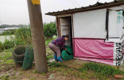 進入汛期以來,司家社區(qū)嚴格執(zhí)行領導帶班和24小時值班制度,確保人員隨時在崗、汛情及時傳遞,在江寧河堤上每隔五十米儲備麻包防止漫堤,迎水坡草全部用打草機打短。柏家橋中農(nóng)戶孫秀云在田地種菜時看到社區(qū)工作人員在河堤搬運沙包,想到連日暴雨,汛情嚴重,便主動將家里閑置蛇皮袋捐獻出來,并且自備鋤頭、鐵鍬等工具成為了搶險志愿者中的一員,全面聽從社區(qū)安排,協(xié)助工作人員清潔地面,同時,在了解到自家私自搭建的披棚有潛在危險時主動配合拆除披棚。她表示:“正是因為社區(qū)工作人員不分晝夜的守護,我們才能安居樂業(yè),作為當?shù)鼐用裎覀儺斎灰ε浜戏姥垂ぷ鳌?rdquo;