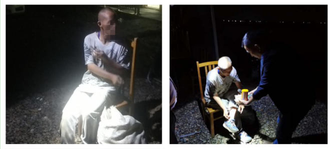 巡查中,工作人員發(fā)現(xiàn)不遠處的圩堤上有一老伯拎著一大件塑料袋,走路歪歪倒倒,形跡可疑,然而現(xiàn)在正值酷夏,天氣悶熱,加上圩堤上濕滑泥濘,圩堤下水位不斷攀升,隨時都有跌入河中的危險?;鹁娲骞ぷ魅藛T立即上前攙扶并詢問情況,向上級匯報。