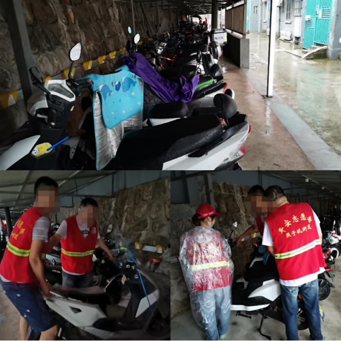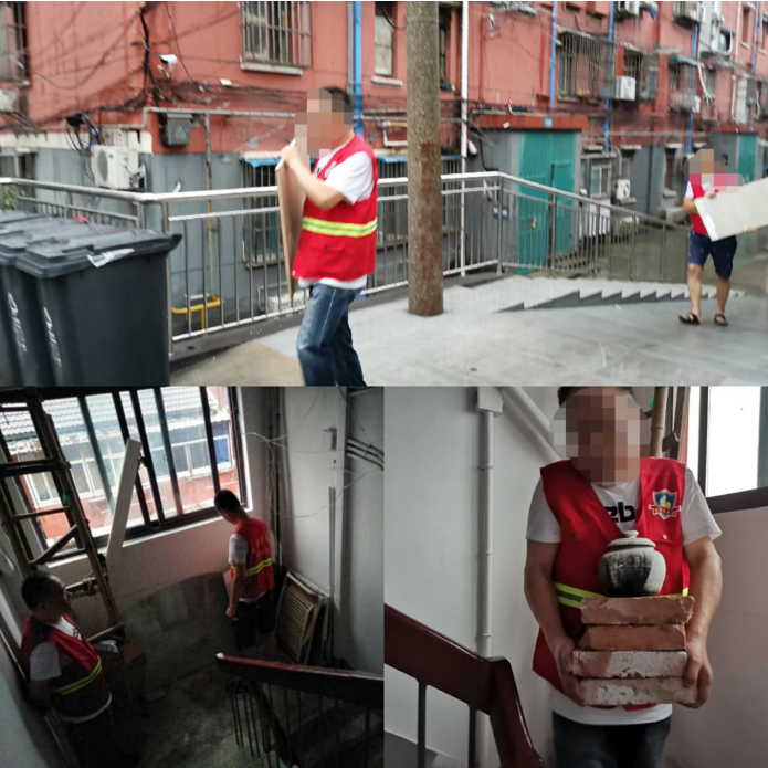 早上8點(diǎn)鐘多一點(diǎn),天空還在下著大雨,我們的矯正人員就按照約定時(shí)間提前來到社區(qū)門衛(wèi)等待,人齊之后冒雨到小區(qū)樓棟清理雜物。在社區(qū)工作者的帶領(lǐng)下,身穿志愿者紅馬夾的他們,樓上樓下,一趟又一趟,一單元又一單元,汗水混合著雨水,直至包干的幾幢樓清理完畢,才停下來休息一會(huì)兒。接著來到了電動(dòng)車車棚,將一輛輛電動(dòng)車頭尾一致,規(guī)范擺放整齊??粗麧嵱行虻能嚺?,他們說心情都感覺舒暢了。為防止個(gè)別居民繼續(xù)亂停亂放,給我們提出了良好的建議,建議社區(qū)做一個(gè)的提示牌,督促大家有序規(guī)范停放車輛。