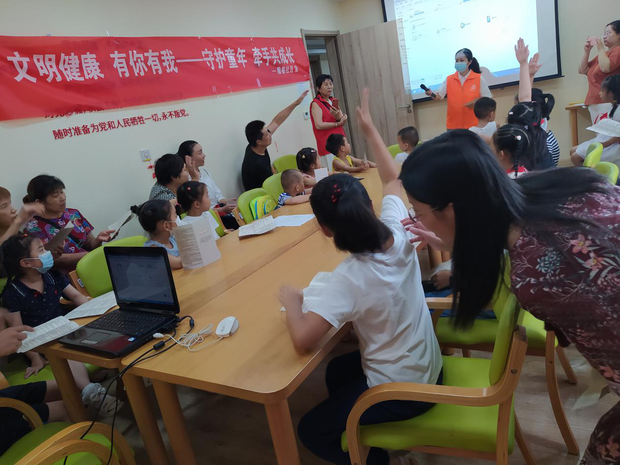 立秋后天氣涼爽,殷巷社區(qū)的許多居民帶著孩子聚集在新時(shí)代文明實(shí)踐站進(jìn)行舞蹈、書法、手工等活動(dòng),社工和志愿者們走進(jìn)新時(shí)代文明實(shí)踐站,通過發(fā)放“民法典50問”的繪本,向社區(qū)居民解讀了部分關(guān)于民法典的基本常識(shí),并同居民開展了問答互動(dòng),為積極參與回答的社區(qū)居民們送上了雨傘等小禮品,居民們紛紛表示有所收獲。